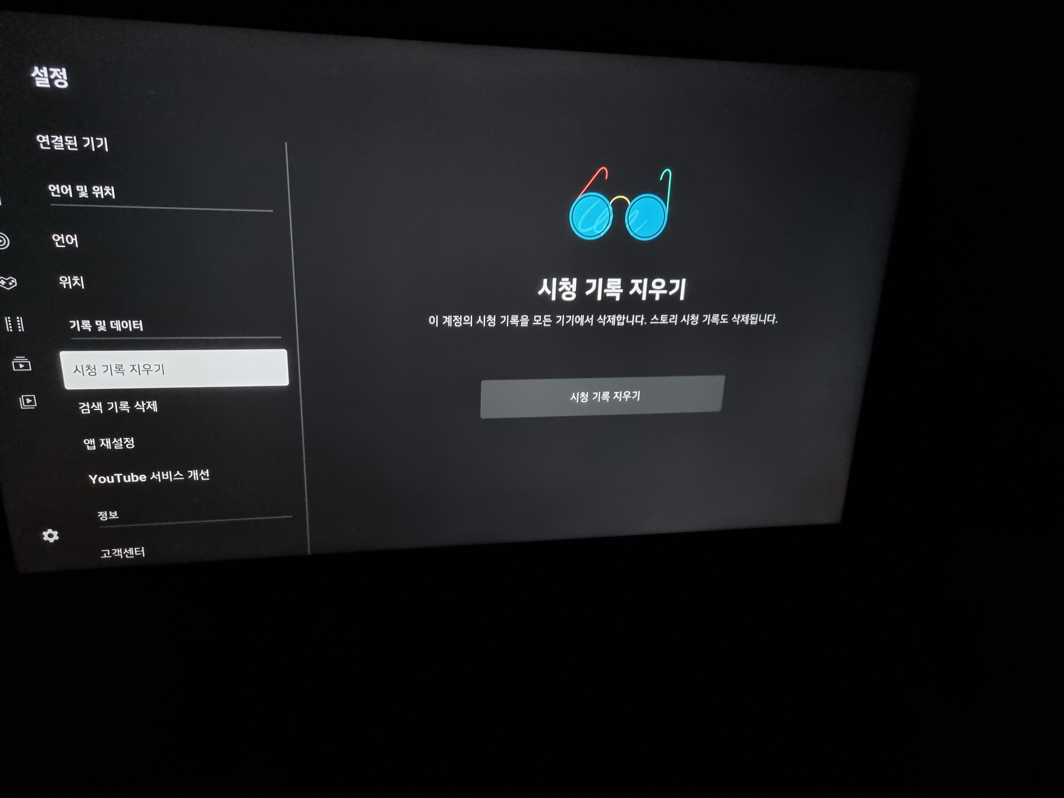 그리고 유튜브는 폰이나 tv에서 보는 것에 따라 추천 알고리즘이 달라 지기 때문에 설정에 시청기록 삭제를 하시면 됩니다.