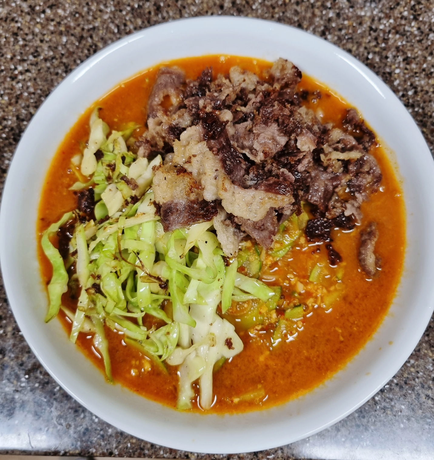 차돌의 살짝 기름지지만 된장 국물이 그 맛을 잡아주고 고기의 고소한 맛과 된장의 구수한 맛 느껴지며 고기 식감과 탱글한 소면식감 양배추의 아삭한 맛이 더해져서 좋았습니다.