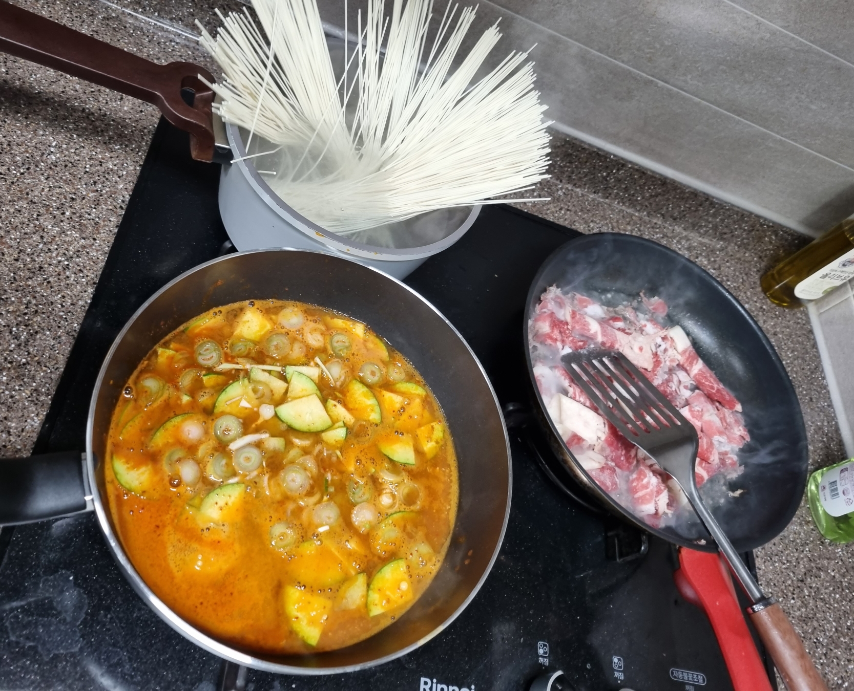 만약 1구라면 소면 부터 삶으면서 야채손질, 된장 준비 하면서 소면은 헹궈서 물기 빼서 놔두고 된장끓인 다음 고기랑 숙주 준비하다가 먹기 전에 된장을 더 끓여서 세팅을 하면 될꺼 같습니다.