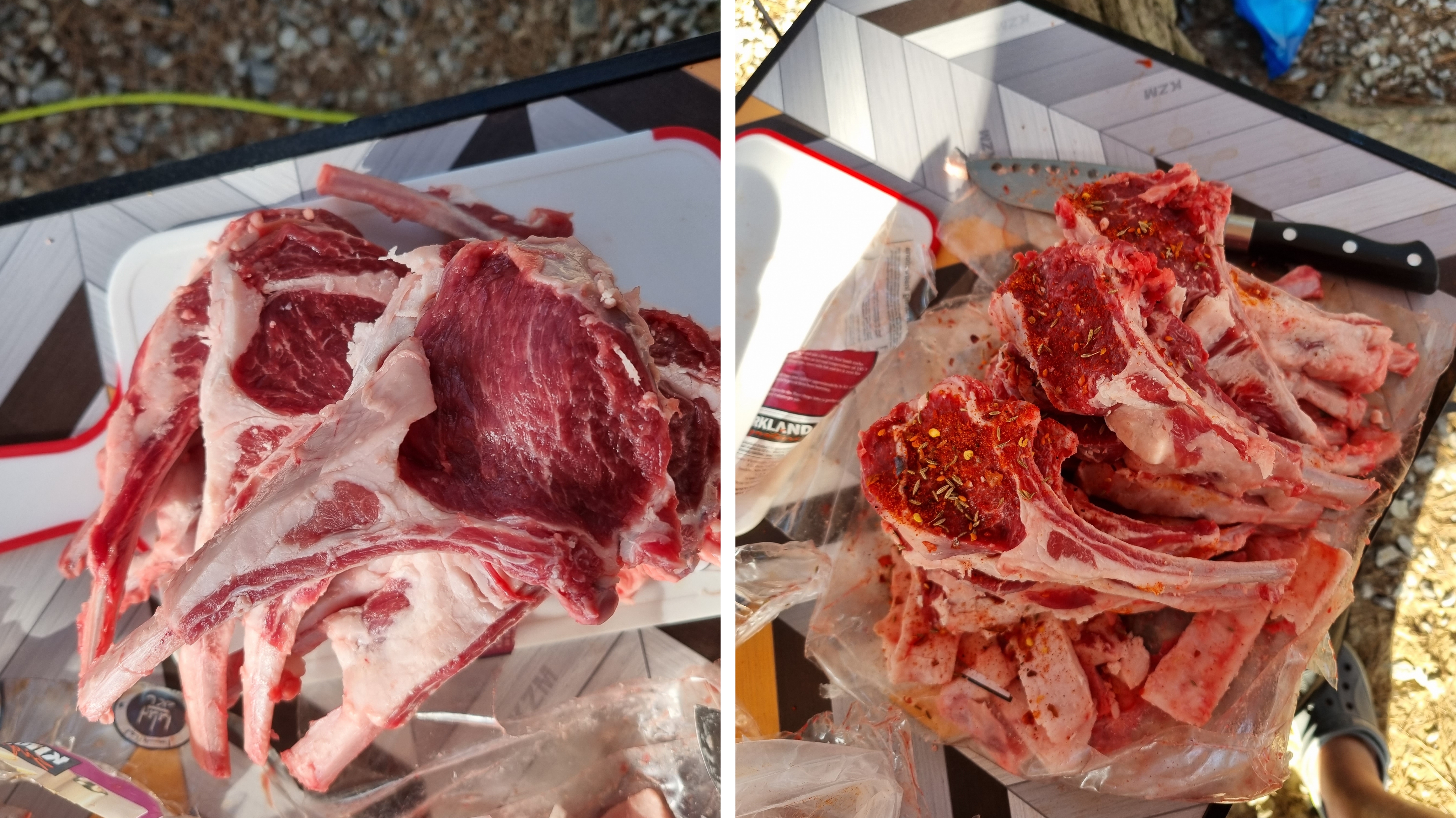 이번 캠핑 갔을때 양갈비나 먹어 볼까 했는데 손질된 게 너무 비싼감이 있어 그냥 내가 해보자 해서 시작했습니다.