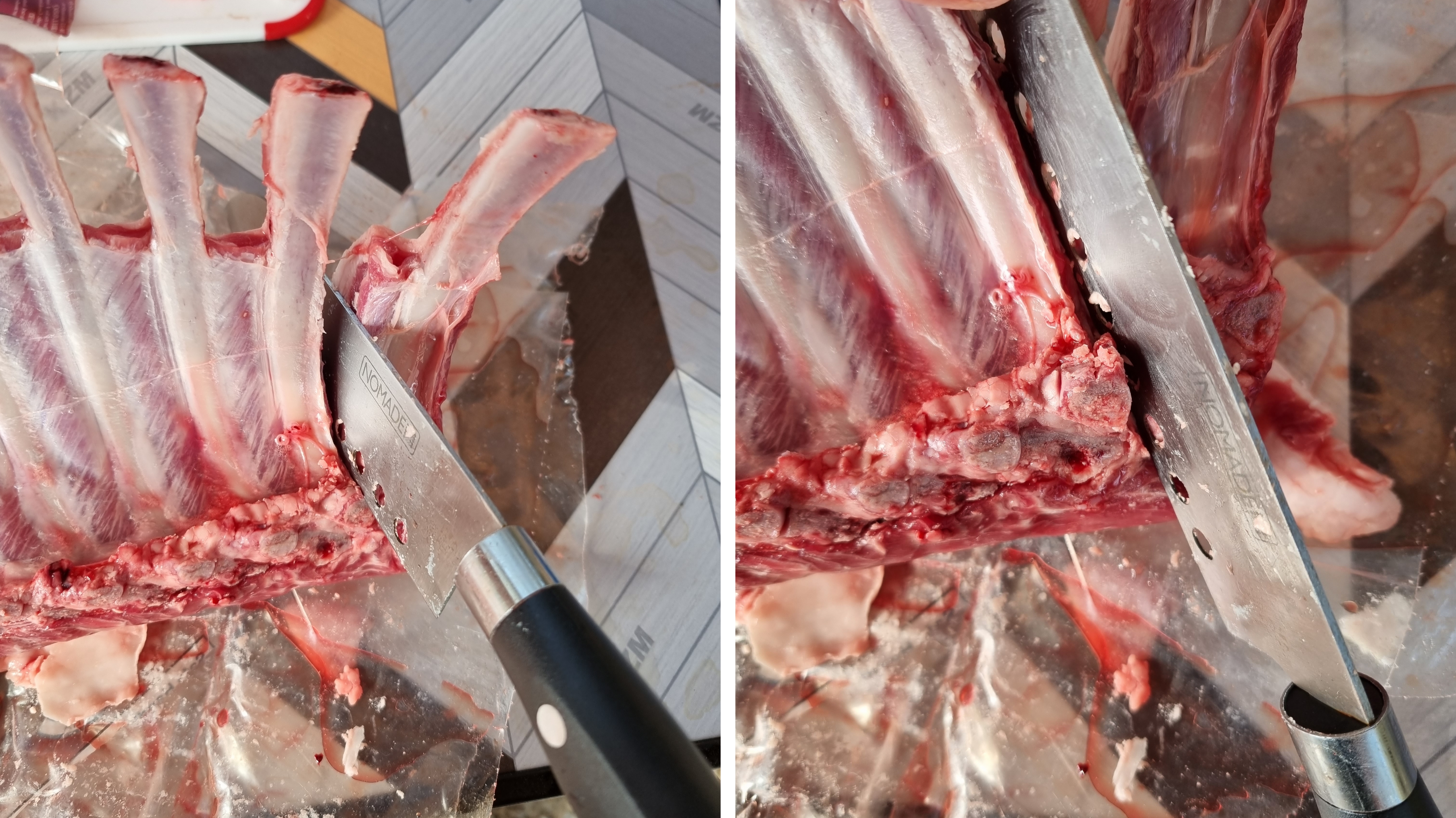 소나 돼지도 갈비를 통으로 사면 갈비뼈 안쪽에 막이 있으니 때 주시면 식감이 더 좋고요. 미끄러워서 잘 안된다 하면 키친타월을 이용하면 됩니다