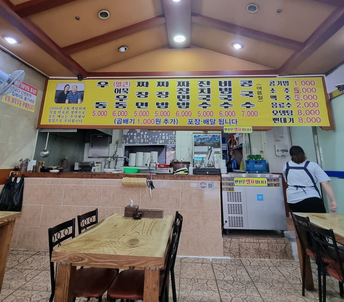 이사진 한장이면 이 가게 소개갸 충분 할꺼 같네요. 왼쪽 2006년 부터 시작된 그밑 즉석에서 기계면을 뽑는 것을 보실수 있고요. 저렴한 가격은 덤!